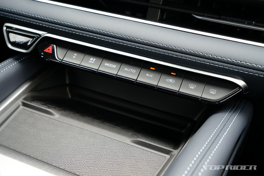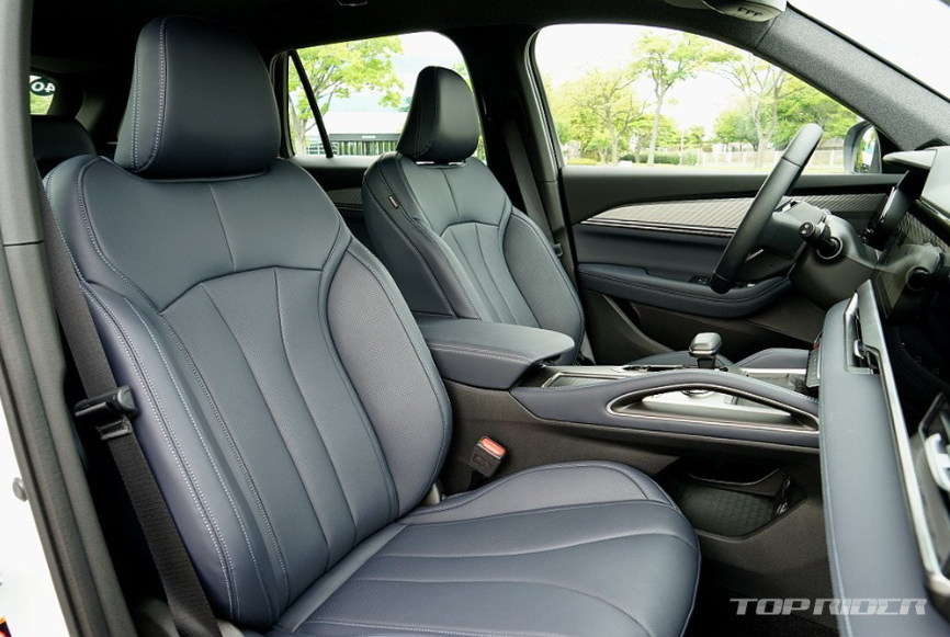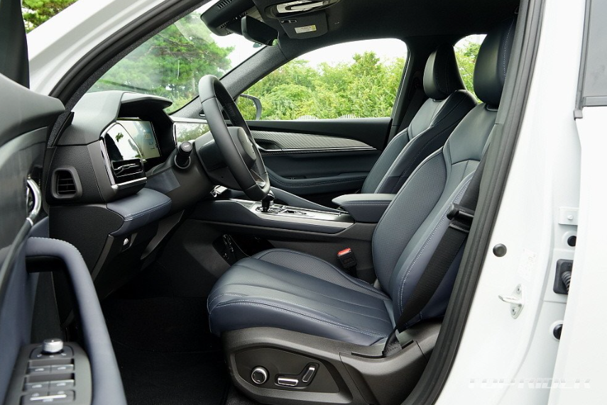 실내는 평범한 소재와 인조가죽, 그리고 약간의 금속성 소재가 조합돼 적당한 고급감을 연출합니다. 특히 인상적인 부분은 나파 인조가죽 시트의 부드러운 촉감과 착좌감입니다. 시트의 특성은 의외로 승차감에 큰 영향을 미치는데, 1열과 2열 시트 모두 좋으 느낌을 전합니다.