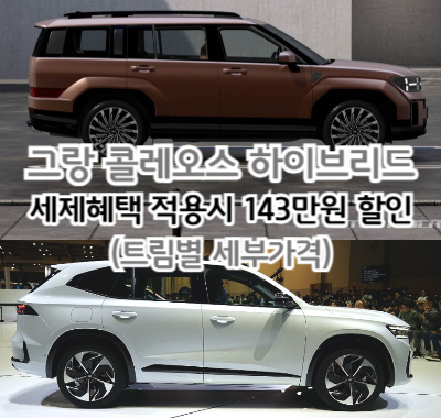 그럼 여기까지 그랑 콜레오스 하이브리드 세제혜택 적용시 143만 원 할인(트림별 세부가격) 된다고 하여 소식 전해드렸습니다.