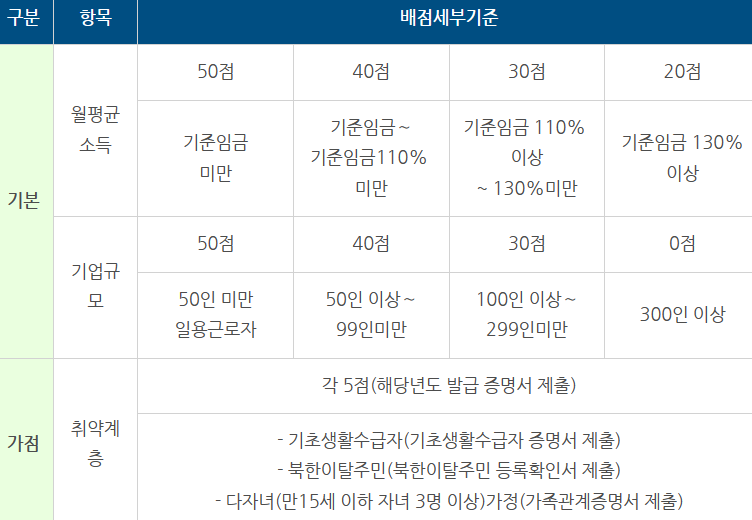 ※ 기업규모 : 법인의 경우 법인등록번호를 기준(본사+지사)으로 판단하며, 개인사업장의 경우 사업주 주민등록번호를 기준으로 판단합니다.