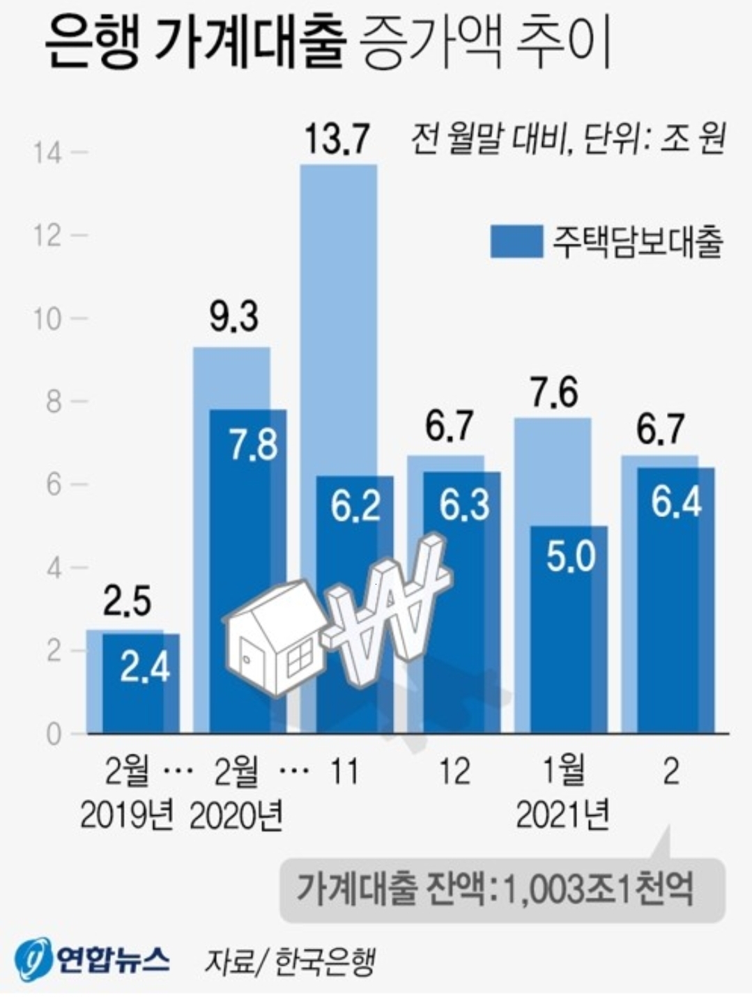 이는 코로나19에 따른 생활 자금 수요와 부동산·주식 투자를 위한 수요자가 겹친 영향이라고 합니다.