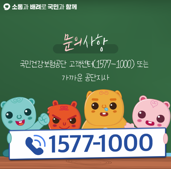 국민건강보험공단 고객센터(1577-1000) 또는 가까운 공단지사