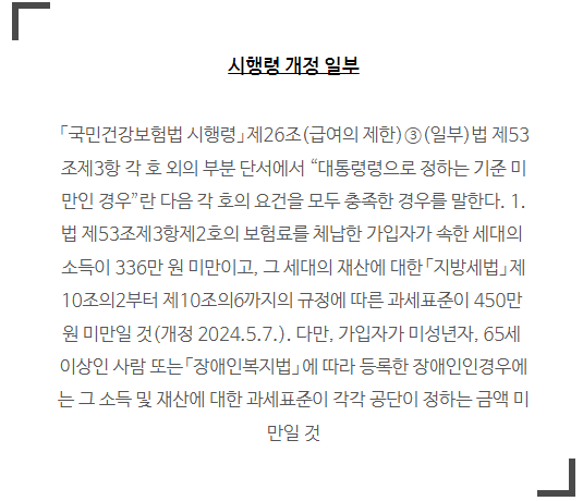 - 보험료 체납에 따른 급여제한자 중 급여제한 제외대상 요건인 소득 및 재산 기준을 완화하여 생계형 체납자 수급권 보호를 강화