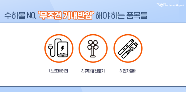 휴대용 선풍기 역시 배터리가 포함되어 있어, 수하물이 아닌 반드시 기내에 들고 탑승해야 합니다.
