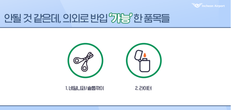 무류기, 인화성 물질 등 항공 안전을 위협할 수 있는 각종 위험 물품들은 반입이 힘든 것을 어렵지 않게 짐작할 수 있습니다. 그런데 위의 경우처럼 각종 생활용품들은 분별하기 어려울 때가 종종 있습니다.