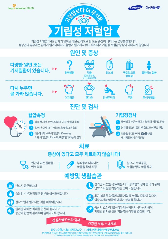 또한, 고온다습한 여름철엔 저혈압 중에서도 '기립성 저혈압'이 나타날 가능성이 크므로 주의해야 한다고 합니다.