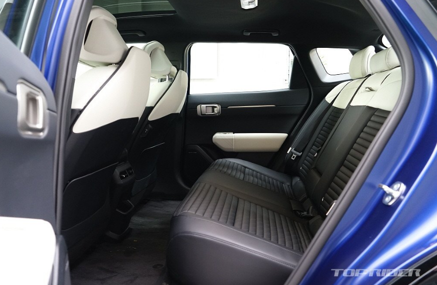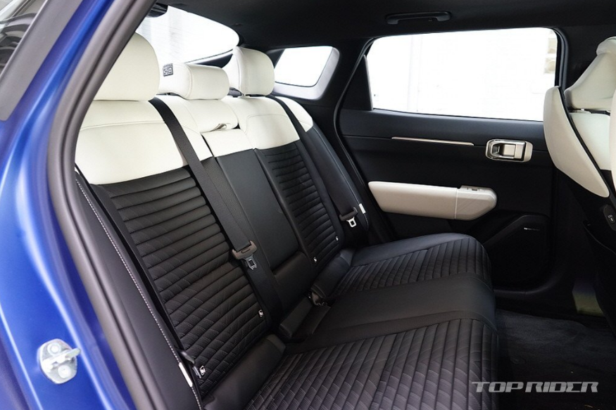 또한 1열에 릴렉션 시트를 적용하고, 2열 시트 등받이의 각도를 최적화했다고 합니다. 특히 2열 등받이 각도는 준대형급 세단만큼 편합니다. 기아 최초로 시트 포지션과 조명 밝기를 전환할 수 있는 '인테리어 모드'를 적용했으며, 실내 소재간 통일된 컬러 조합으로 기대 이상의 고급스러움을 전합니다.