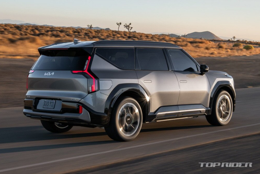 EV9 GT의 배터리 용량과 주행거리는 공개되지 않았습니다. EV9 GT 외관에는 GT 전용 보디킷이 적용됐습니다. 전면부에는 액티브 에어 플랩과 GT 전용 주간주행등 그래픽이 배치됐습니다. 21인치 휠은 285/45R 21 고성능 컨티넨탈 타이어와 조합됐습니다. 브레이크 캘리퍼는 형광색으로 마감됐습니다.