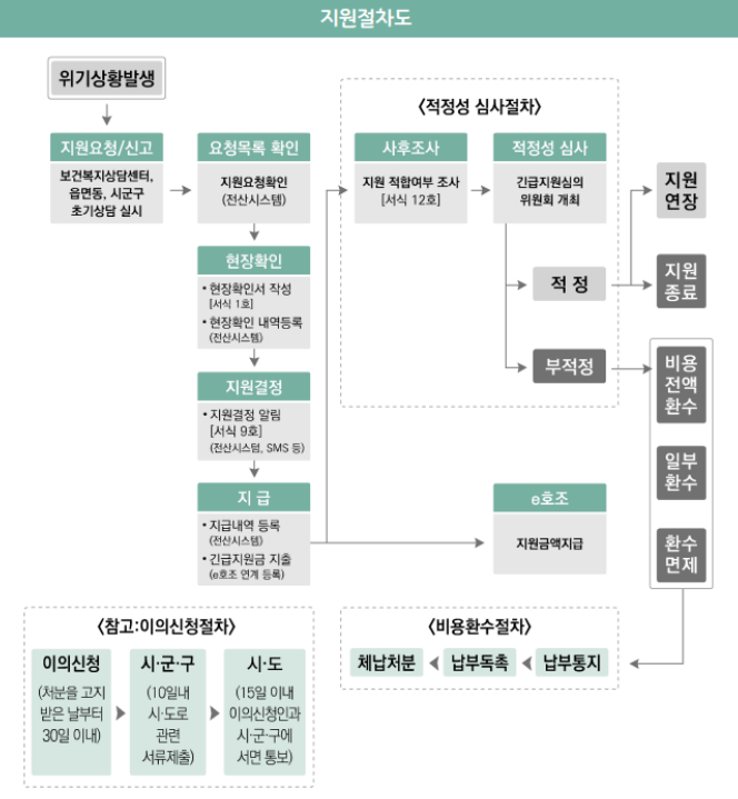① 지원대상 : 위기상황의 발생으로 생계유지 등이 곤란한 가구