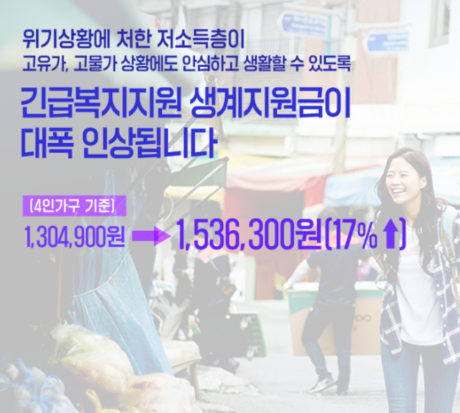 긴급복지지원금 생계지원금이 대폭 인상됩니다.