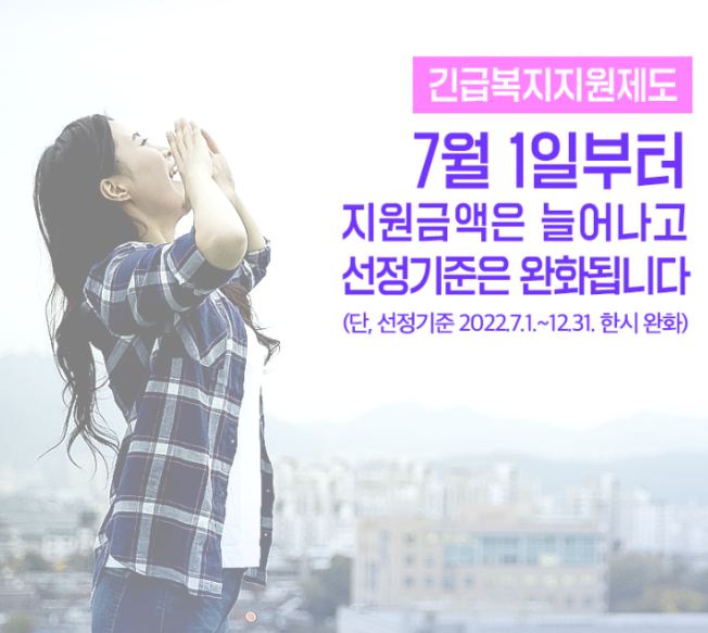긴급복지 생계지원금 7월 1일부터 인상 및 선정기준 완화