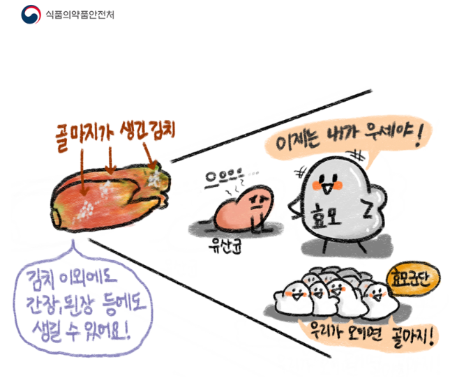 김치 위 흰것은 곰팡이가 아닌 효모에 의해 생긴 '골마지'라고 합니다.