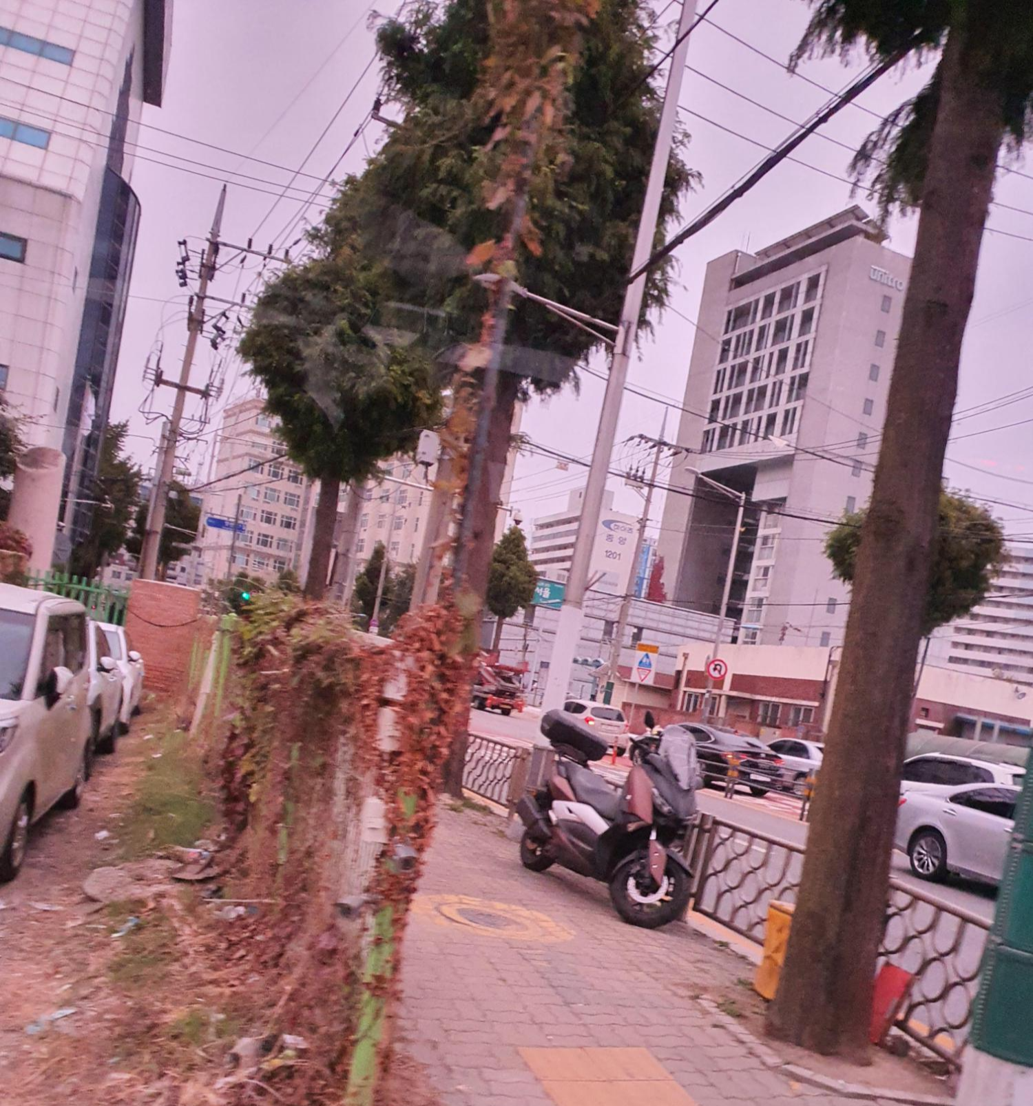 sk주차장 셔틀 버스에서 가는길 사진을 찍었습니다.