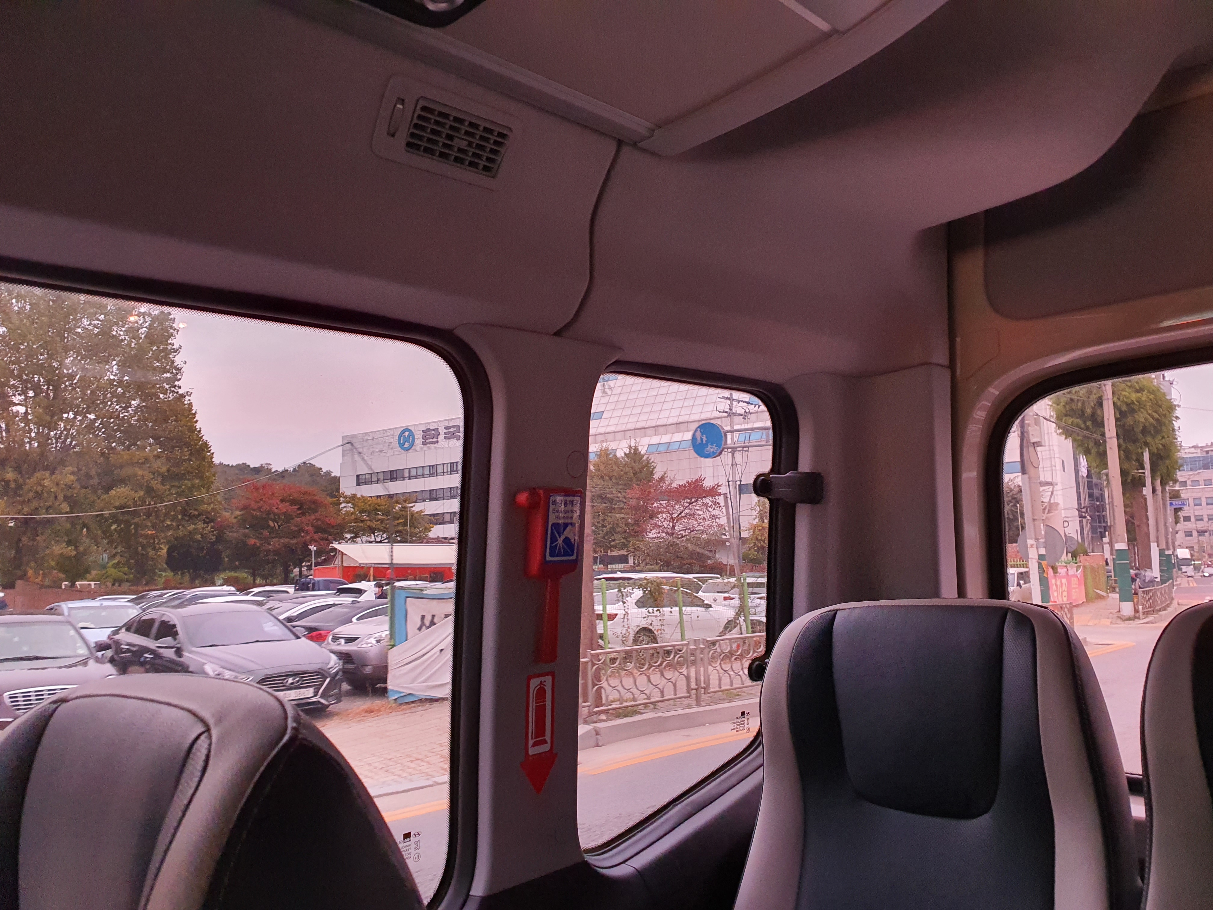 sk주차장 셔틀 버스에서 가는길 사진을 찍었습니다.
