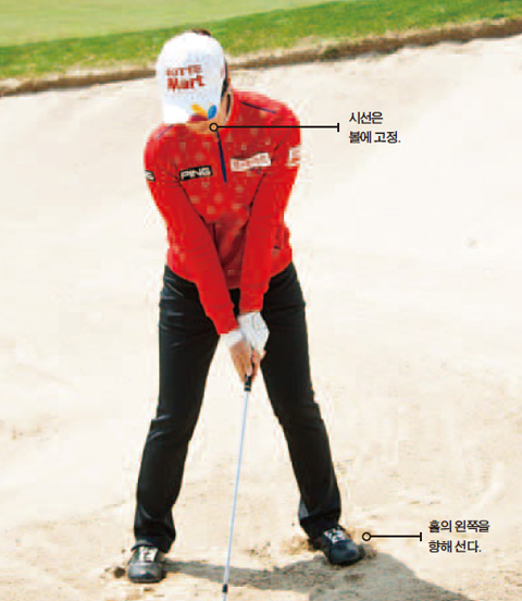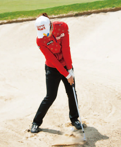 벙커에서는 볼 뒤의 모래를 가볍게 걷어내야 한다고 합니다.
