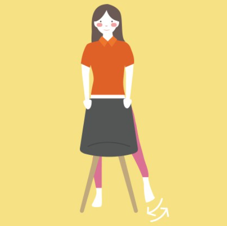 2. 의자를 손으로 짚고 서서 한족 다리를 옆으로 들어 올려 잠시 멈추었다가 내리는 것을 5~10회 반복합니다. 반대쪽도 마찬가지 방법으로 실시합니다.