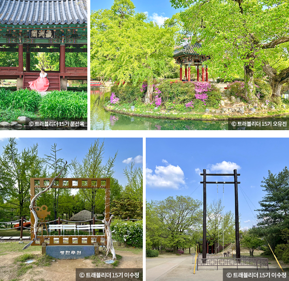 광한루원은 우리나라 대표 4대 누각 중 하나인 광한루를 볼 수 있는 곳입니다. 성춘향과 이몽룡이 사랑에 빠진 곳으로도 유명한 이곳은 견우와 직녀의 전설이 담긴 오작교를 비롯해 월매집, 완월정 등을 구경할 수 있습니다. 곳곳에는 춘향전을 모티브로 한 다양한 조형물이 있어 한복을 입고 방문한다면 예쁜 사진을 남기기에도 좋습니다.