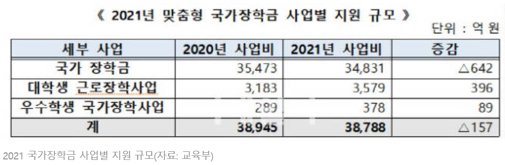 우수학생 국가장학사업 예산 378억원을 별도로 책정, 약 4400명의 학생이 지원받을 수 있도록 했다고 합니다.