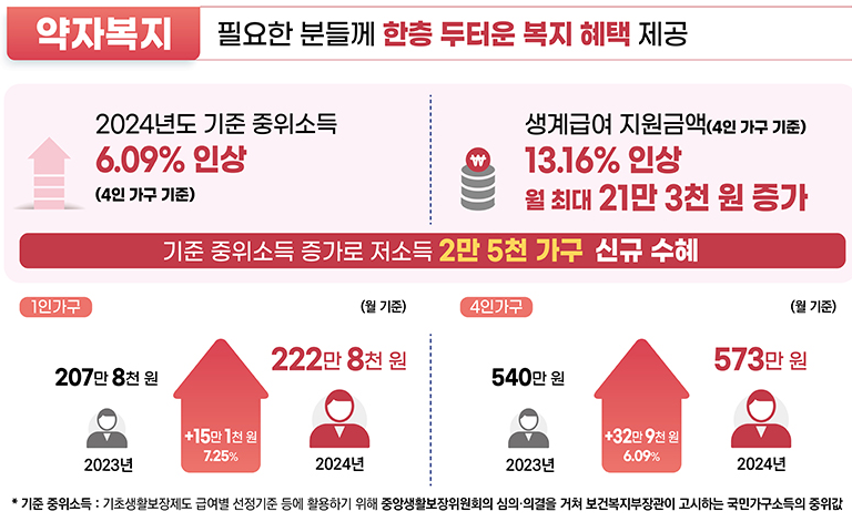 이날 중앙생활보장위원회에서는 2024년도 급여별 선정기준 및 최저보장수준도 확정했습니다.