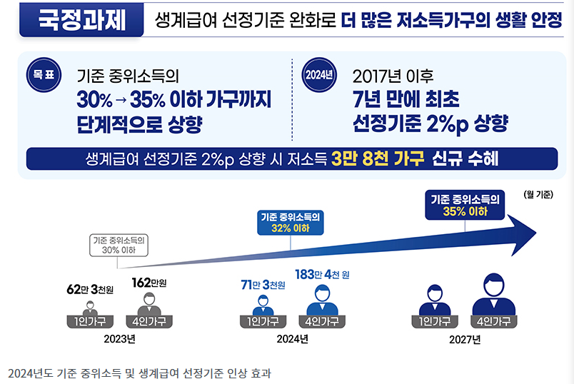 이날 중앙생활보장위원회에서는 2024년도 급여별 선정기준 및 최저보장수준도 확정했습니다.
