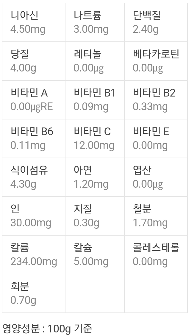 노루궁뎅이생버섯 100g당 28kcal