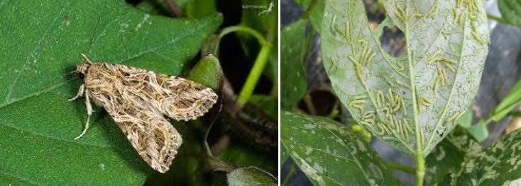 나방류 중 파밤나방과 담배거세미나방은 콩, 녹두 등과 같은 두류에 주로 피해를 줍니다. 이들은 잡식성으로 피해가 커서 초기에 발생 밀도를 낮추는 것이 중요합니다.