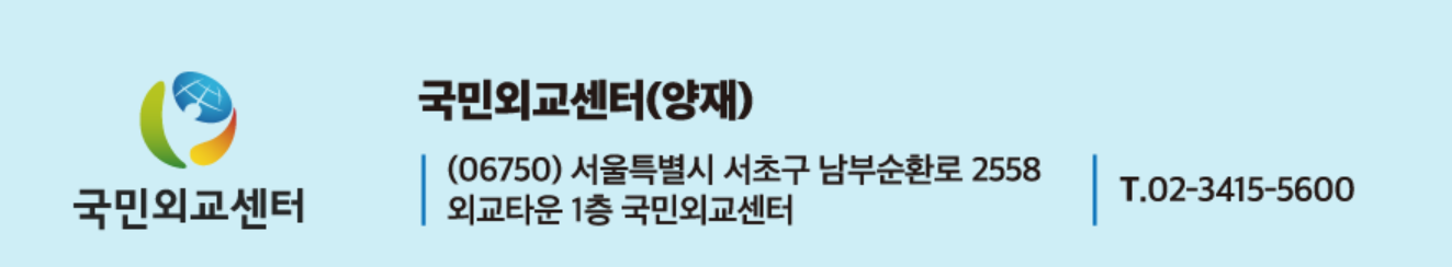 06750) 서울특별시 서추구 남부순환로 2558 외교타운 1층 국민외교센터