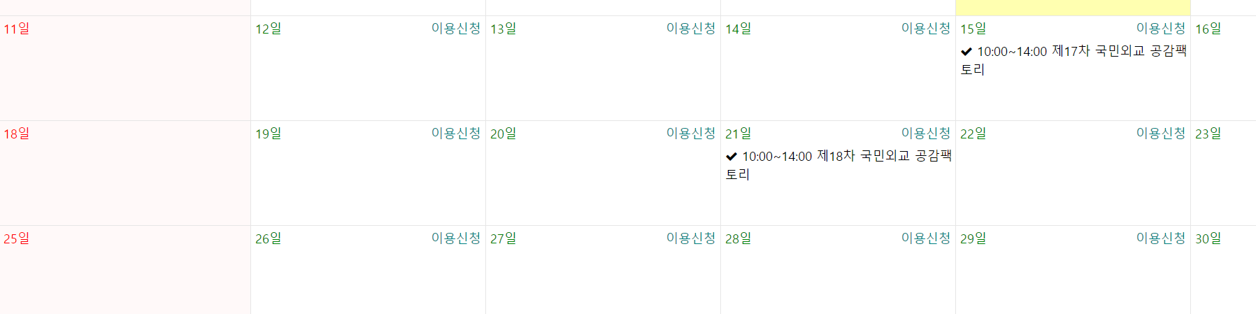 동 누리집(웹페이지)은 센터 대관뿐만 아니라 국민외교 행사 일정을 안내하고 참가 신청할 수 있는 서비스도 제공하고 있다고 합니다.