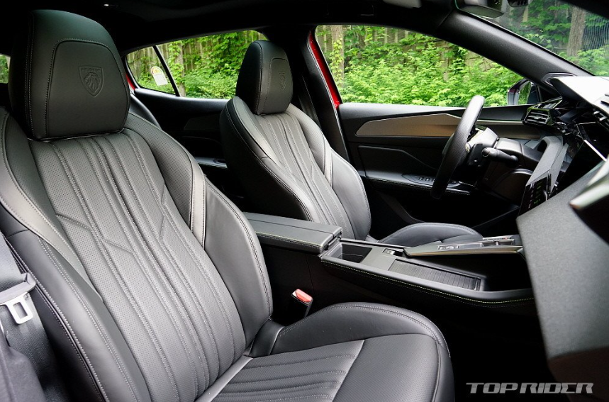 운전석에서의 시트포지션은 세단에 가깝습니다. 운전자세는 세단, 언더 플로어의 높이는 SUV 스타일로, 안정적이면서 시원한 전방시야를 제공합니다. 쿠셔닝이 좋은 두툼한 시트와 헤드레스트의 엠블럼 문장은 프리미엄 브랜드에서도 인색하기 쉬운 구성인데 408에는 기본입니다.