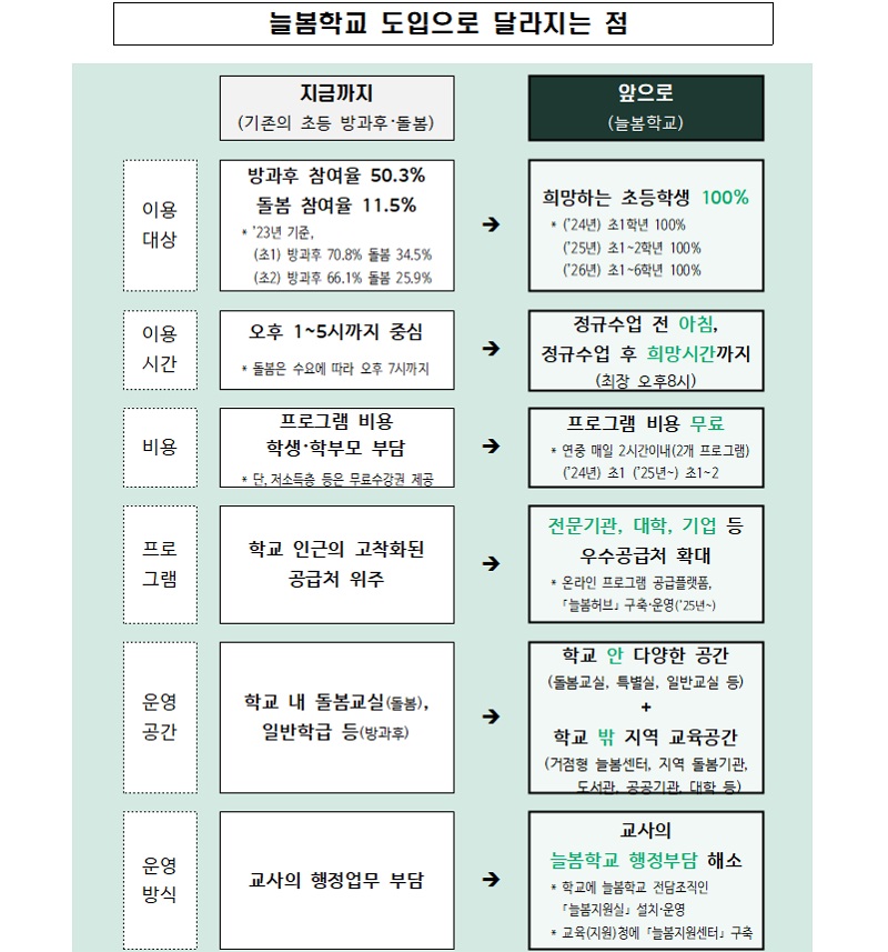 | 변경 전(방과후·돌봄) | 변경 후(늘봄학교) | |