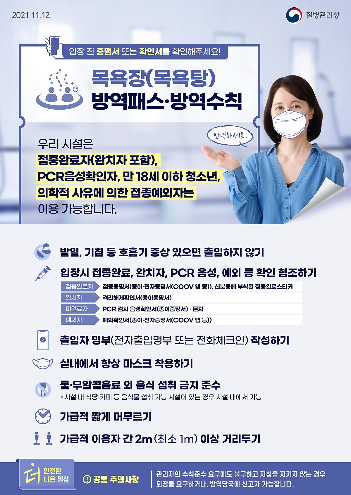 목욕장(목욕탕) 방역패스·방역수칙과 관련한 자세한 사항은 포스터로 확인해주세요