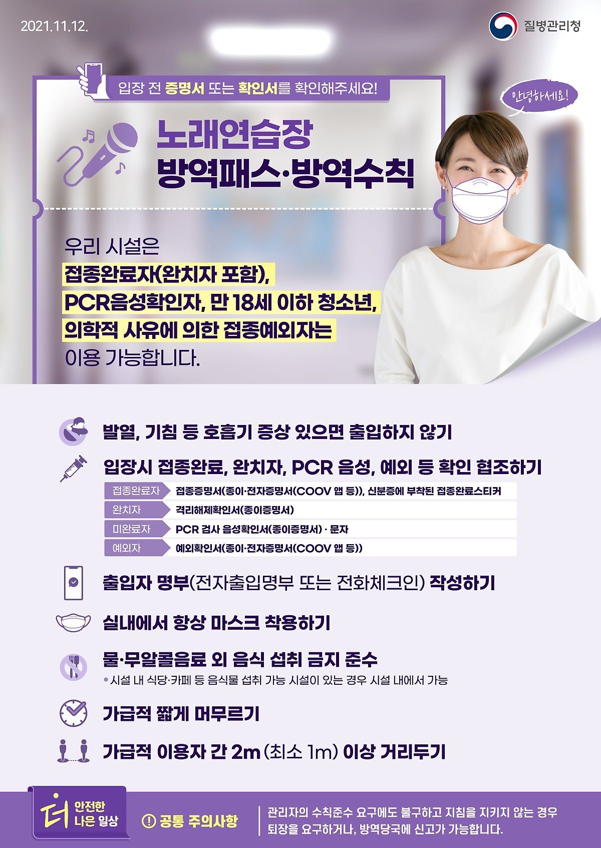 노래연습장 방역패스·방역수칙과 관련한 자세한 사항은 포스터로 확인해주세요