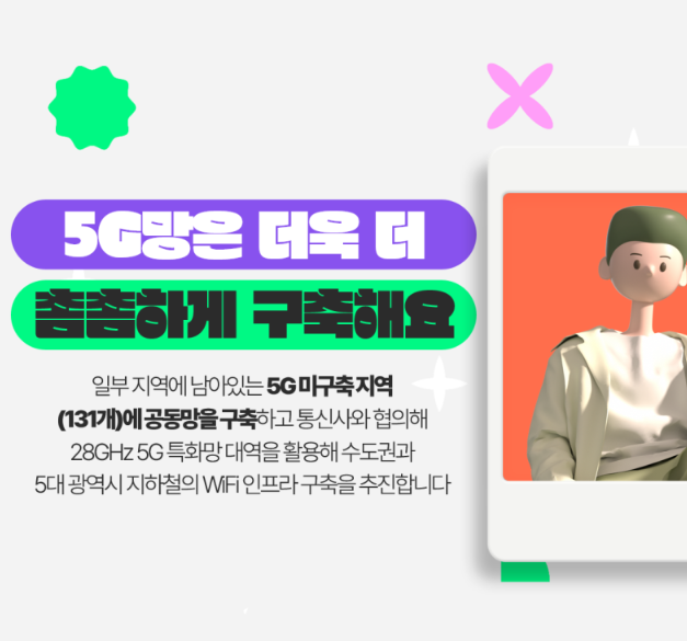 👉 일부 지역에 남아있는 5G 미구축 지역(131개 시·군)에 공동망 구축(2024년 1분기까지)