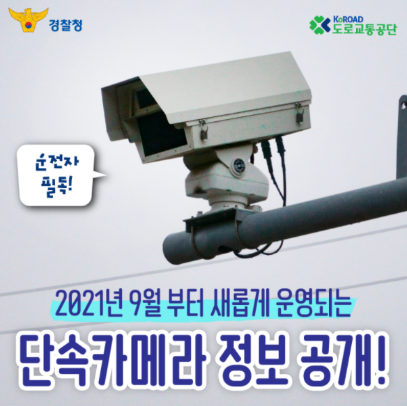 2021년 9월, 도로교통공단이 사람들에게 실질적이고 효율적인 교통안전 정보를 제공하기 위해 매월 단속 카메라 정보(교통과학장비)를 공개한다고 합니다.