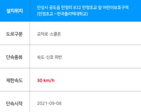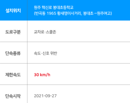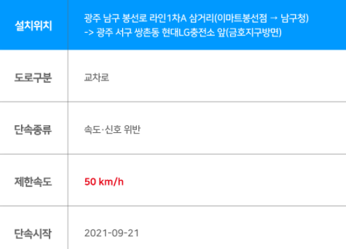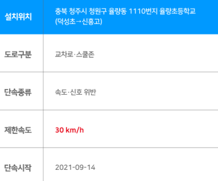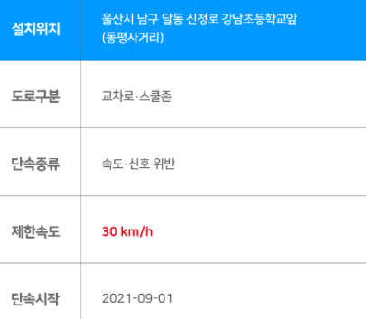 2021년 9월, 도로교통공단이 사람들에게 실질적이고 효율적인 교통안전 정보를 제공하기 위해 매월 단속 카메라 정보(교통과학장비)를 공개한다고 합니다.