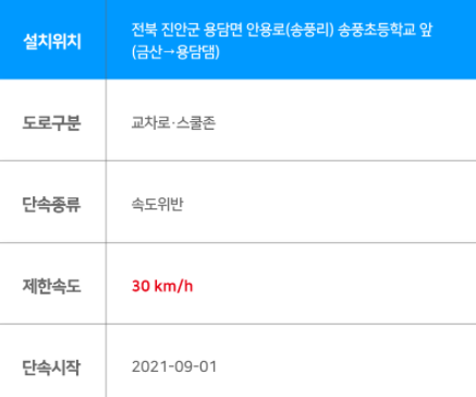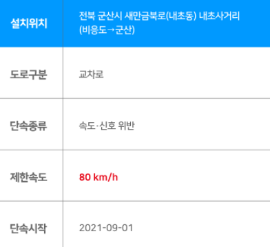 전북 단속카메라 신규 설치 31개, 단속카메라 속도 변경 1개