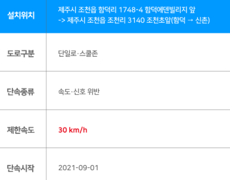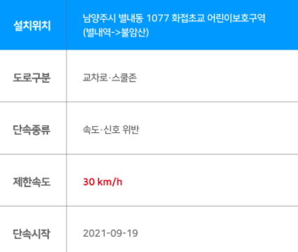 2021년 9월에는 단속카메라 신규설치가 345건, 단속 카메라 이전 설치가 8건, 단속카메라 속도 변경이 6건으로 총 413개의 단속 카메라 정보가 업데이트 되었다고 합니다.