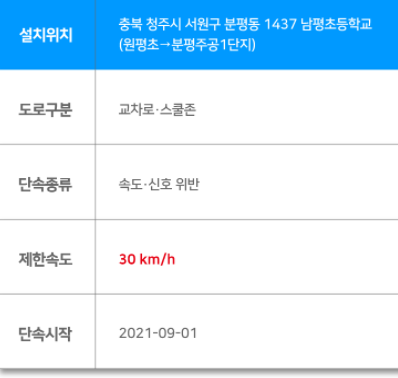 충북 단속카메라 신규 설치 16개, 단속카메라 속도 변경 1개