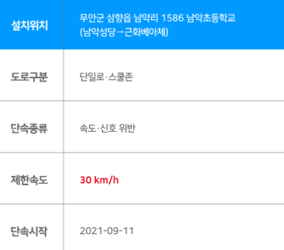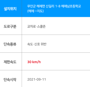 전남 단속카메라 신규 설치 15개, 단속카메라 속도 변경 7개, 단속카메라 이전 설치 1개