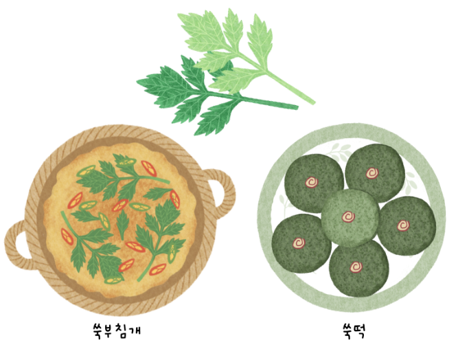 쑥은 오래전부터 약으로 사용해왔으며 요즘도 쑥뜸이라는 쑥을 이용한 한방치료가 있을 정도로 몸에 좋은 봄나물인데, 섬유질이 풍부해 변비에 효과가 있으며 혈액 속 백혈구의 수를 늘려 면역기능을 높여줍니다. 또한 간 회복 기능과 지방 대사를 원활하게 만들어 피로회복에도 좋습니다.