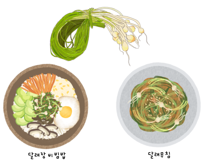 달래는 다양한 요리의 재료로 활용될 수 있습니다. 밥에 쓱싹 비벼 먹을 수 있는 '달래장'부터 시작해 고춧가루와 간장, 식초 등을 이용해 새콤달콤한 '달래무침'을 만들 수도 있습니다. 이외에도 고소한 두부와 달래 양념을 넣고 조린 '두부 달래조림', 된장국에 시원한 풍미를 더해주는 '달래 된장국'까지 가지각색의 달래 요리를 먹으며 봄철 건강도 지킬 수 있는 일석이조의 효과를 가지는 봄나물입니다.
