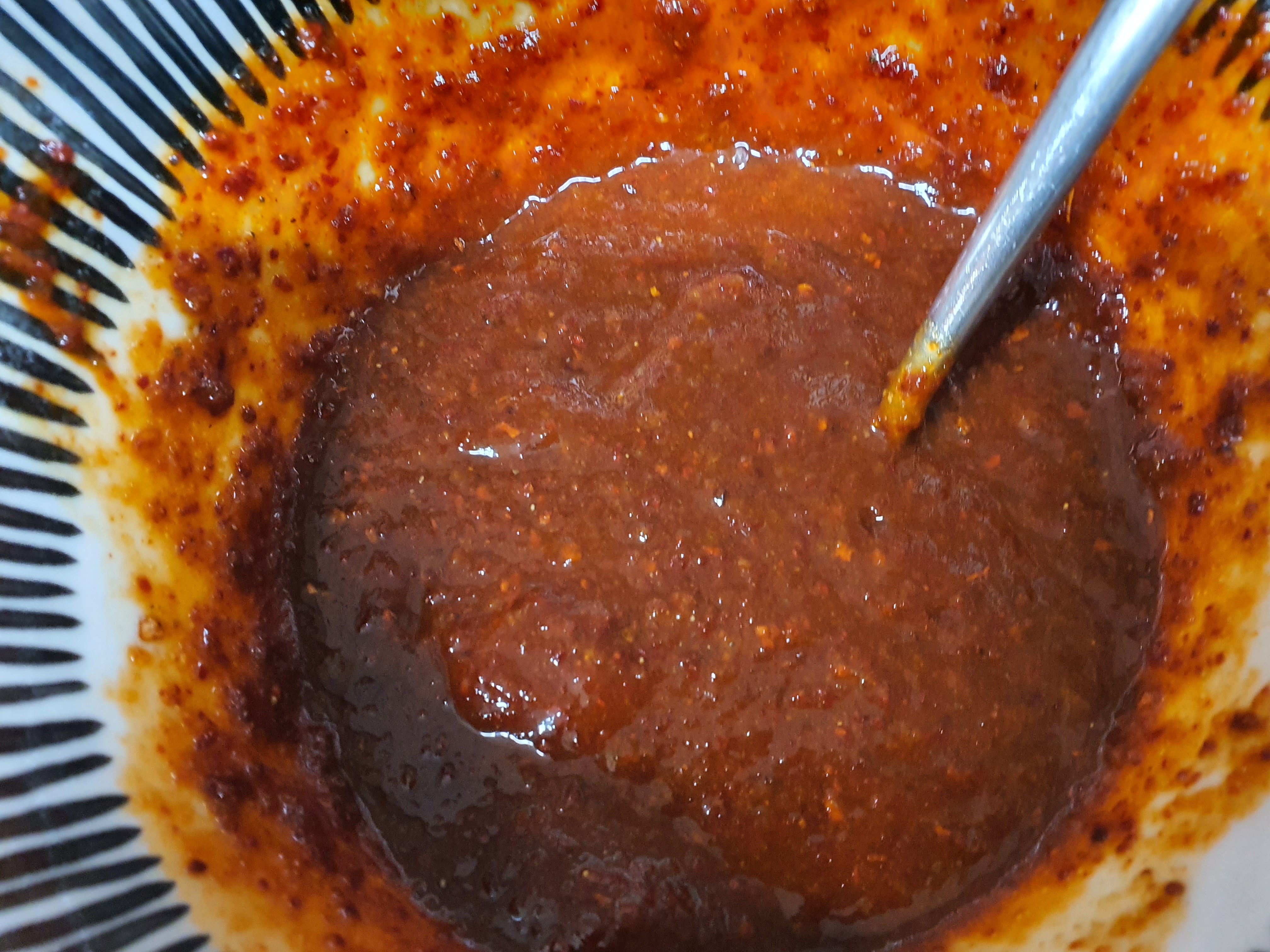 고추장 3숟가락, 고추가루 5숟가락, 간장 1/3컵, 설탕 2숟가락, 다진마늘 3숟가락, 후추가루 조금, 굴소스 2숟가락