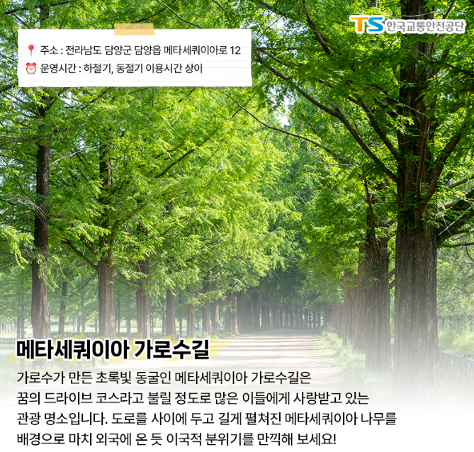 주소 : 전남 담양군 담양읍 메타세쿼이아로 12