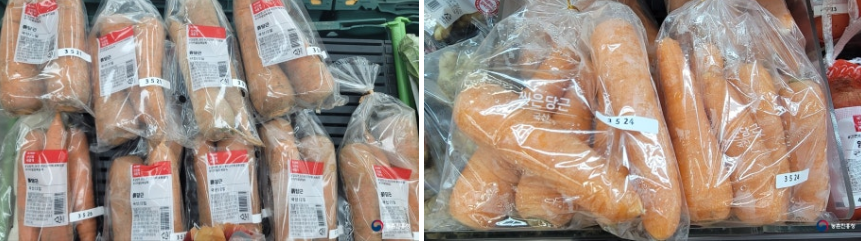 당근 색을 잘 살펴보면 선명한 주황색이 좋은 당근의 특징이라고 합니다. 색이 짙을수록 베타카로틴이 많아서 더 좋은 당근이라고 합니다.