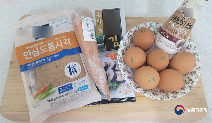 당근 1개(260g), 달걀 6개, 야채 어묵 240g, 소금 0.5작은술, 김 2장