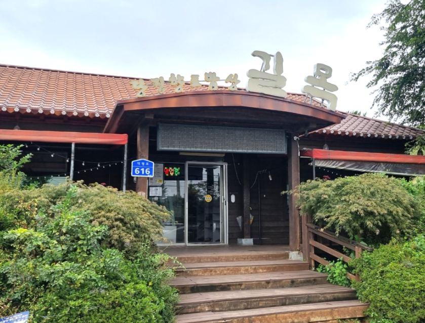 농가맛집에 도착하자 입구에 커다란 간판이 눈에 띱니다. 당진 향토밥상 '길목' 이름처럼 삼거리 길목에 자리하고 있습니다. 식당 사장님께서도 이름 덕분에 처음 방문한 사람들도 기억하고 다시 찾는다고 합니다.