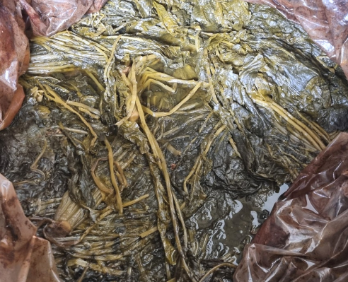 꺼먹지는 숙성 후 바로 먹으면 너무 짜기 때문에, 삶기 좋게 잘라 푹 끓이는 과정을 네 번 정도 거쳐야 한다고 합니다.