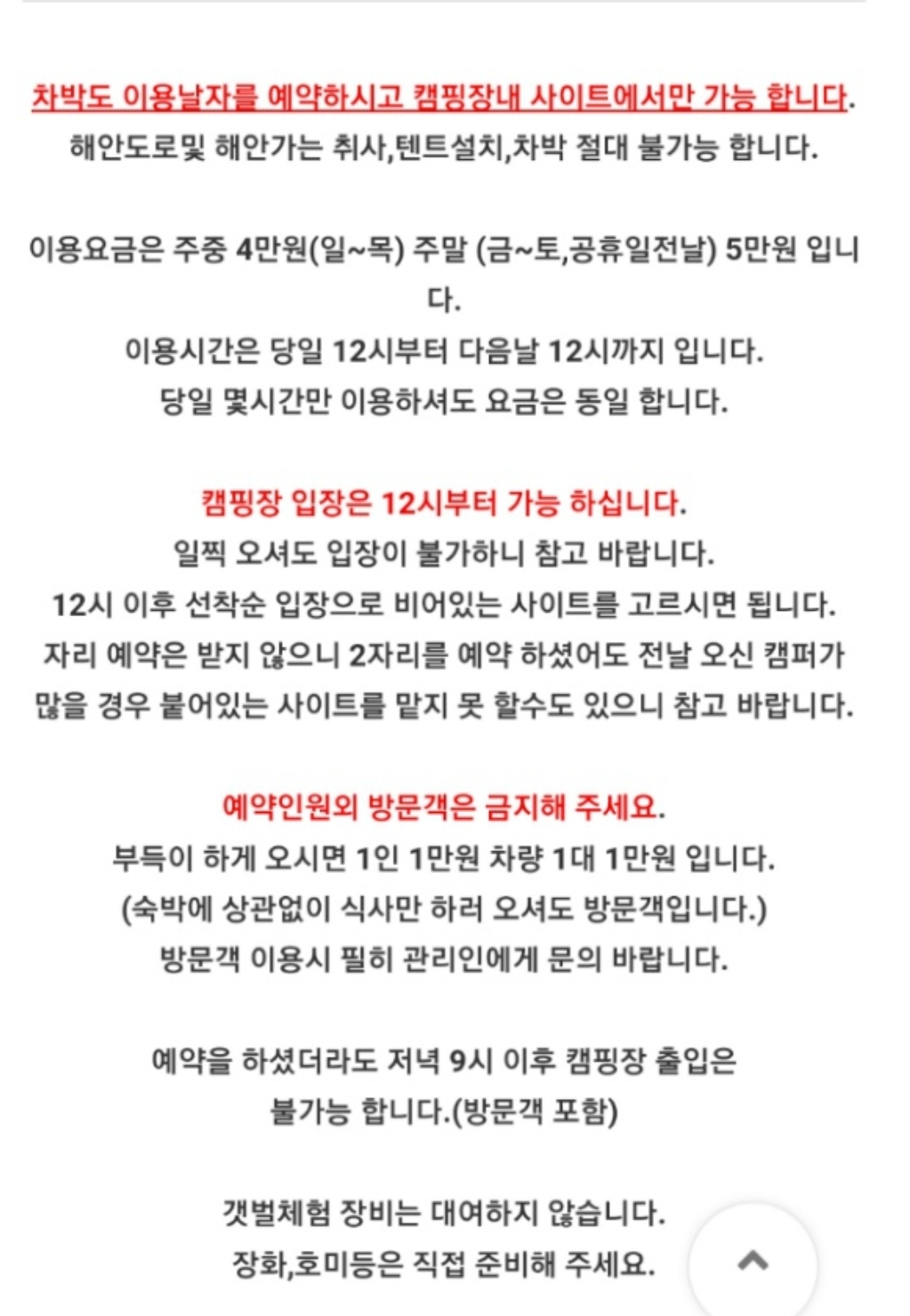 검색하다보니 캠핑장 이용 안내 및 공지사항이 올라와 있군요