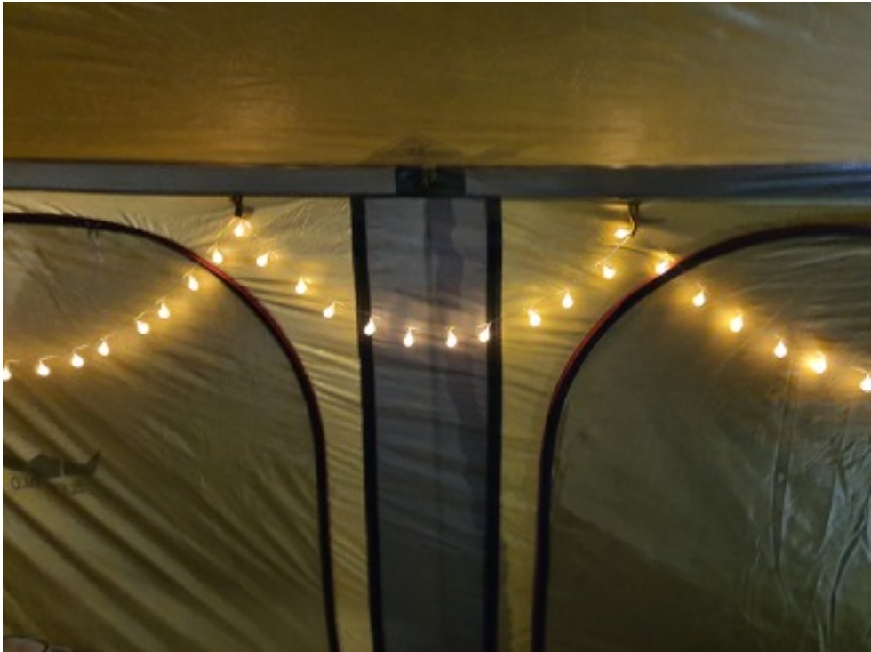 아래 등도 꾀나 훌륭했습니다. 저녁에 누워서 쓰지않는 의자를 접어 타프 모서리 사방에 놓고 등을 올려주니 정말 멋진 카페연출이 되었네요