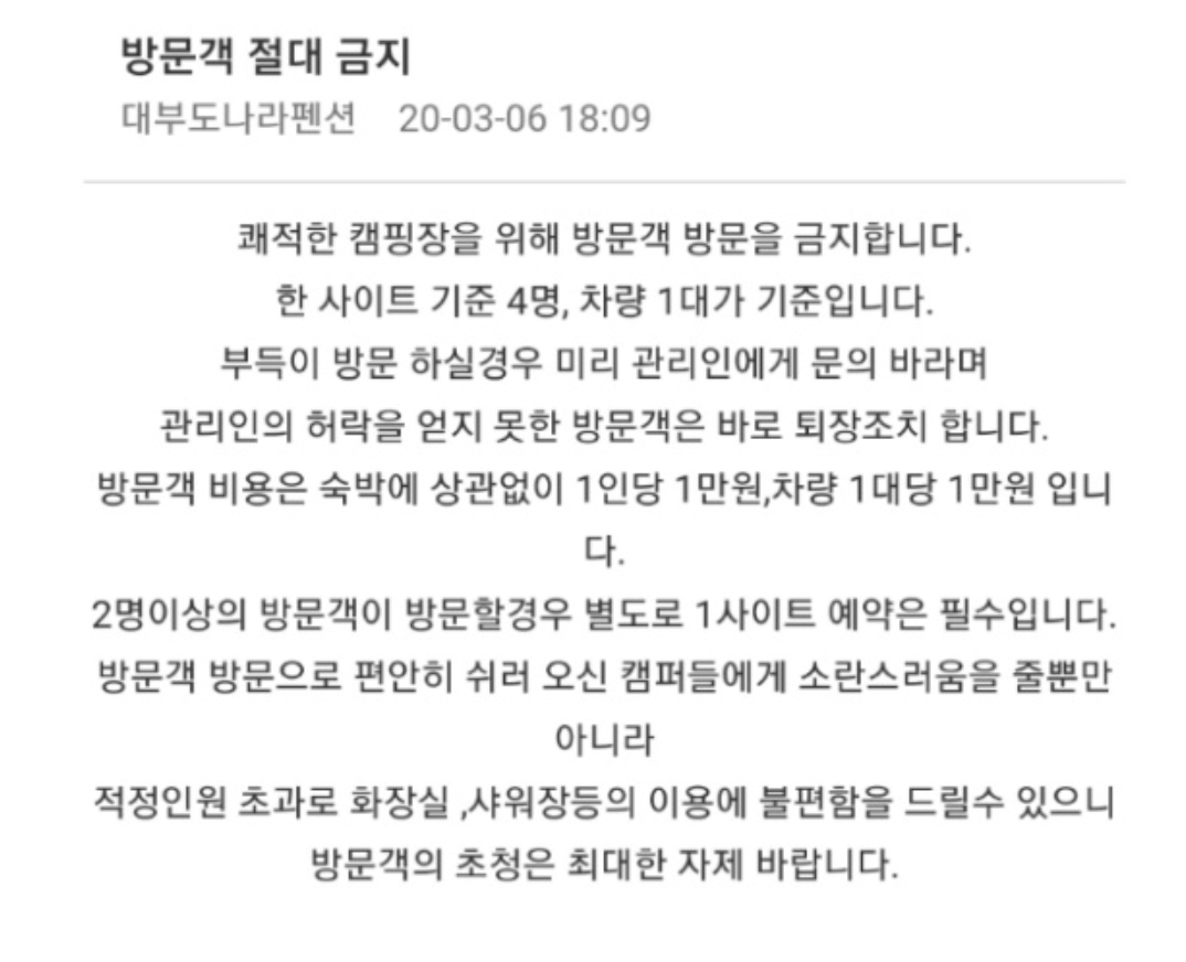 방문객은 2명까지는 괜찮고 1인 1만원과 차량 1대당 1만원입니다.