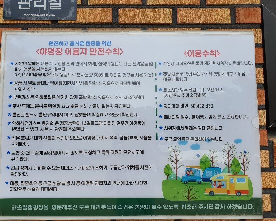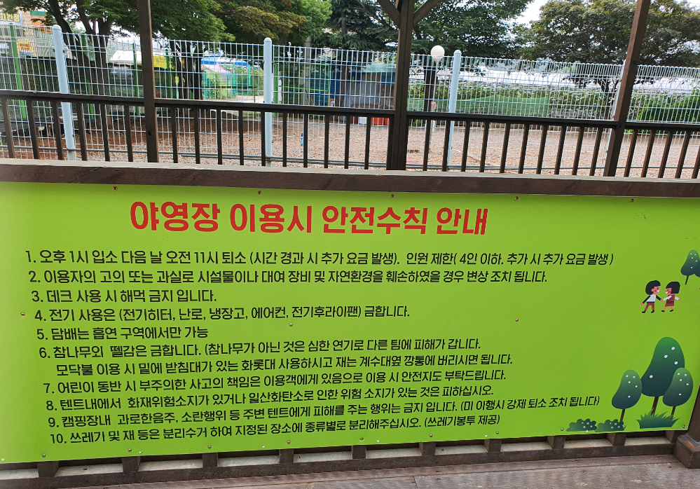 야영장에 적혀있는 '야영장 이용시 안전수칙 안내'라고 적혀있지만..